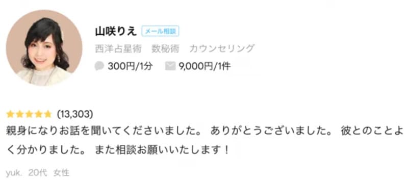引用元:電話占いリノア3位:LINE占い|山咲(やまさき)りえ先生【退職】