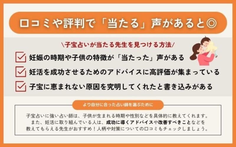 子宝占いが「当たった」という口コミにも、的確なアドバイスに対する感謝の声が多いです。