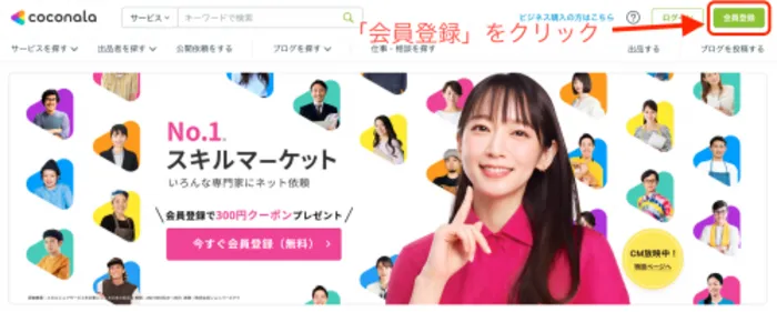 1.「会員登録」をクリックする