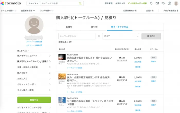 ココナラでの口コミは、依頼した人しかコメントできないようになっているのでかなりリアルです!