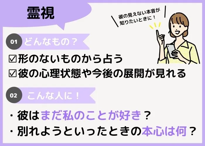 彼と別れることになったけどなぜそうなったのかわからないという人は、彼の見えない本音を知れる霊視による占いがおすすめ。