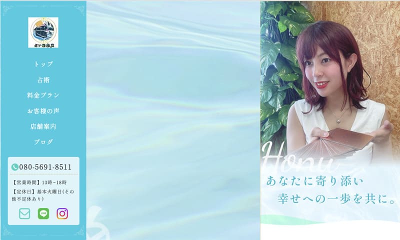 以前はエステメインで活動していましたが、占いが当たると評判になり、地元では「隠れ家的占いスポット」として人気を集めています。