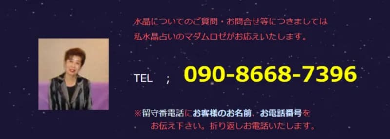 | 使用占術 | 水晶占い・四柱推命・気学など |