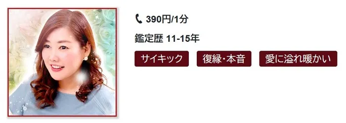 | 得意な相談内容 | 仕事・恋愛・金銭・ペットの気持ちなど |
