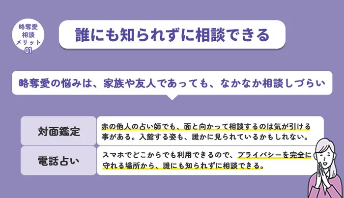 電話占いで略奪愛の相談をするメリットを2つ紹介します。
