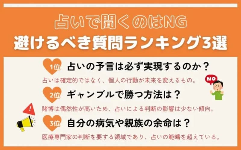 当記事では、占いで人気の相談内容をランキング形式で紹介し、質問例も示します。