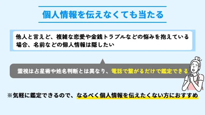 1つ目のメリットは、個人情報を伝えなくても当たることです。