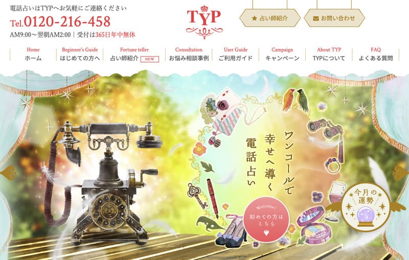 1996年の創業以来、利用者からの信頼を着実に築いてきた「電話占いTYP」。業界屈指の99%というリピート率を誇ります。