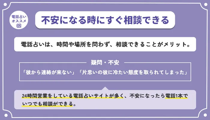 電話占いは、時間や場所を問わず相談できることがメリット。