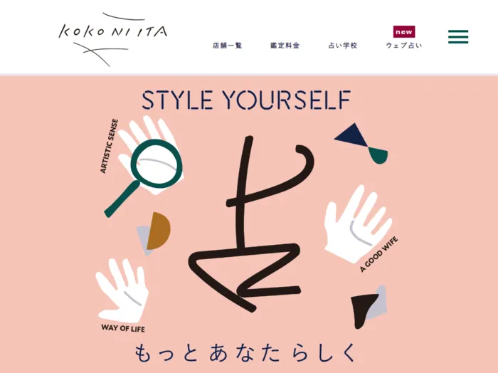 関東、関西、九州に14店舗を展開するここにいたは、手相や算命自然学をメイン占術として使う実力派占い師が集結する占いチェーン。