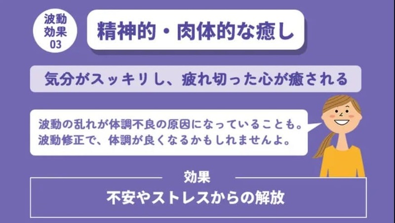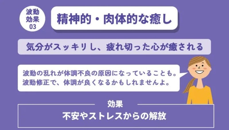 波動修正には、精神的・肉体的な癒し効果も期待できますよ。
